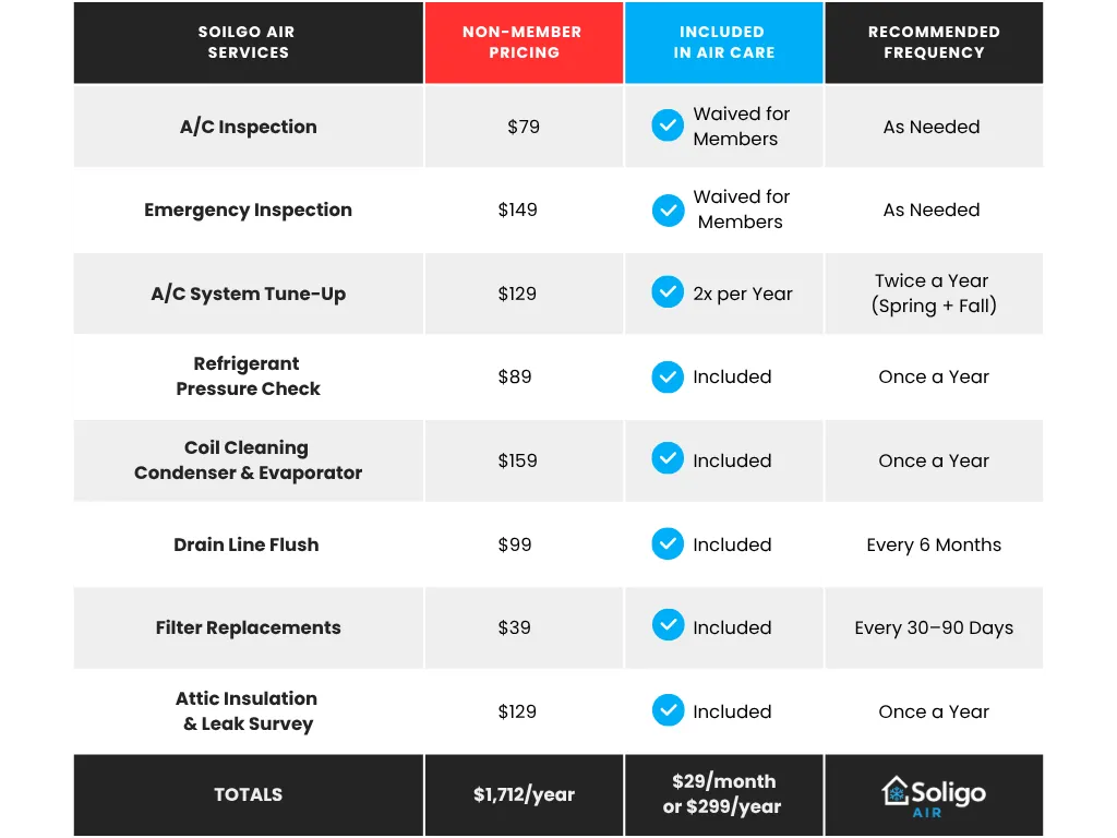 Air Care+ is a $29/month proactive maintenance plan