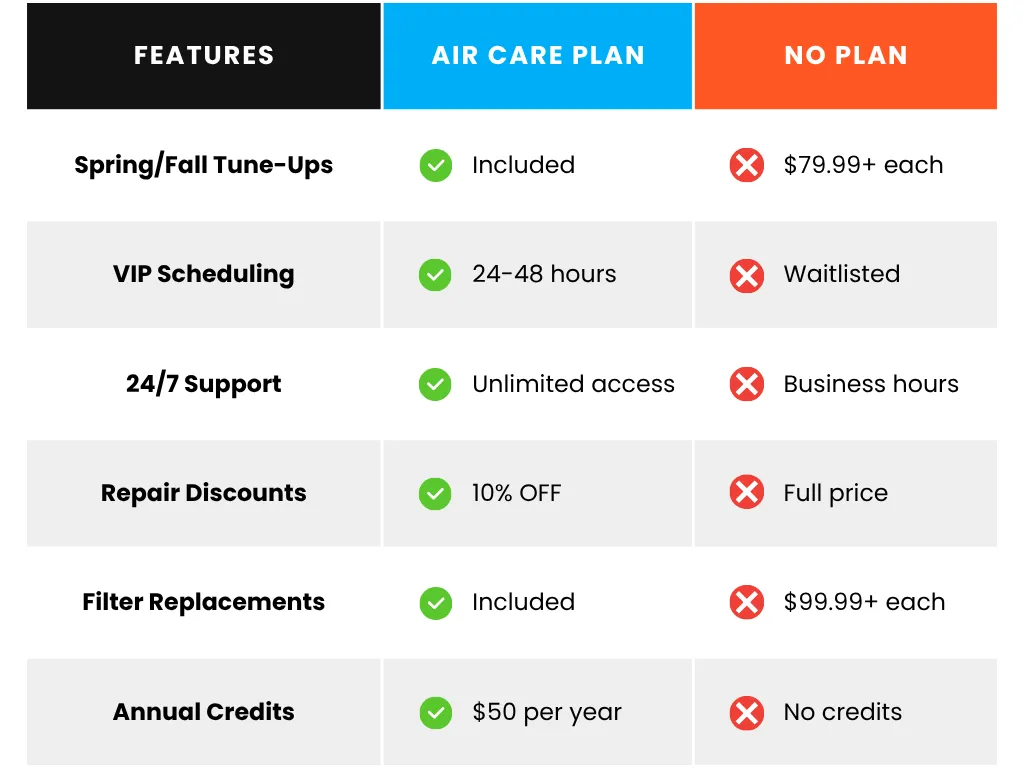 Get 2 AC tune-ups a year, priority scheduling, discounts on repairs, and exclusive member perks.